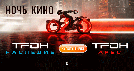 НОЧЬ КИНО: «Трон: Наследие», «Трон: Арес» (предсеанс. обсл.) & к/ф Сказка на ночь (18+)